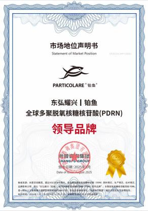 2025年:國(guó)際權(quán)威機(jī)構(gòu)尚普咨詢集團(tuán)認(rèn)證東弘耀興旗下鉑魚品牌為全球多聚脫氧核糖核苷酸(PDRN)領(lǐng)導(dǎo)品牌